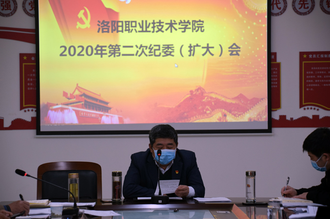 会上,刘彦龙同志传达学习了市纪委书记李保国同志在十一届市纪委常委会第165次(扩大)会上的讲话精神;王少六同志通报了疫情防控期间纪检监察工作;纪委委员对《2020年纪检监察工作要点》《中共洛阳职业技术学院纪委履行全面从严治党监督责任清单》《班子成员廉政承诺书》和《领导干部廉政承诺书》等四个文件进行了审议。