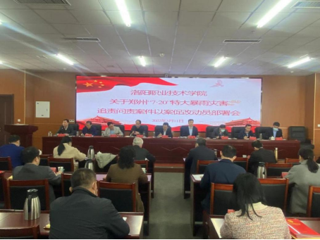 3月11日上午,洛阳职业技术学院在图文信息中心930会议室组织召开郑州“7.20”特大暴雨灾害问责案件以案促改动员部署大会。校党委副书记任晓平主持会议,校纪委书记邓卫国安排部署专项以案促改工作,校党委书记朱美荣讲话并提出具体要求。校领导班子成员、各单位主要领导及相关负责人共计50余人参加会议。