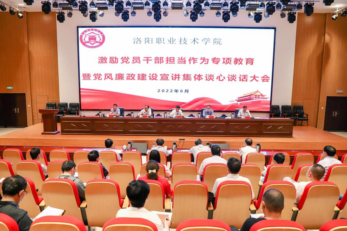 根据上级工作部署安排,为进一步提振党员干部干事创业精气神,激发担当作为新活力,6月1日上午,洛阳职业技术学院在大学生活动中心组织开展激励党员干部担当作为专项教育活动。市纪委监委第八监督检查室副主任郝广林出席会议并进行党风廉政建设宣讲和集体廉政谈话。校党委书记朱美荣出席会议并发表讲话,校领导任晓平、韦元民、张卫国、余江宁、李保安、张志友出席会议,校纪委书记、监察专员邓卫国主持会议,校属各单位、机关各部门主要领导及相关负责人参加会议。