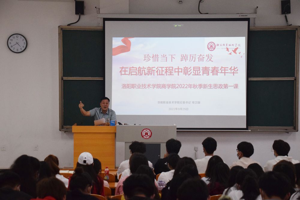 9月29日,纪委书记、监察专员邓卫国以《珍惜当下,踔厉奋发,在启航新征程中彰显青春年华》为题,为其联系的商学院2022级新生上了一堂别开生面的思政课。