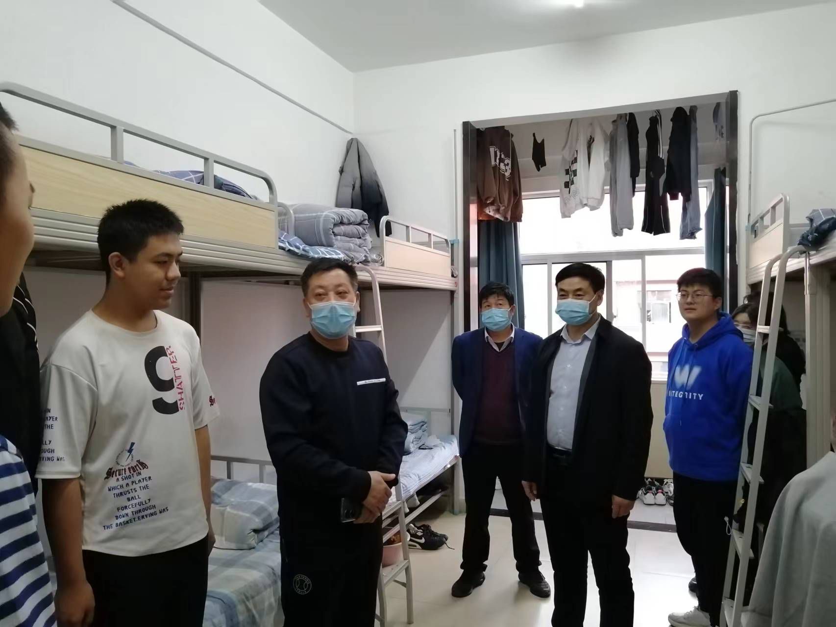 10月22日下午,纪委书记、监察专员邓卫国带领校纪委副科级以上干部到联系班级学生宿舍看望学生,了解学生周末生活和活动情况,与学生进行亲切交谈,并就学生作息时间、疫情防控、身体健康和安全管理等方面提出相关要求。