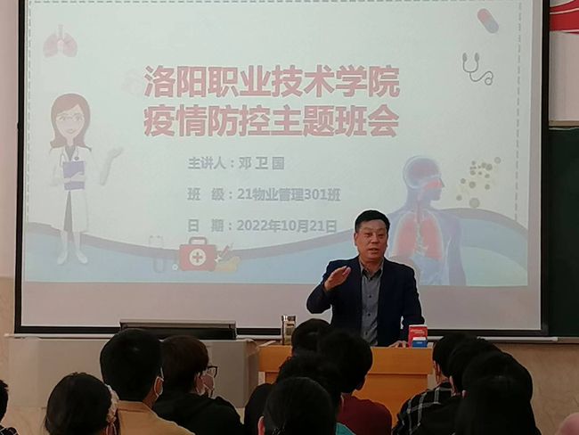 10月21日下午,按照学院学生成长导师联系班级工作要求,进一步强化师生疫情防控意识,学院纪委书记、监察专员邓卫国到联系班级——商学院21物业管理301班召开疫情防控专题班会。