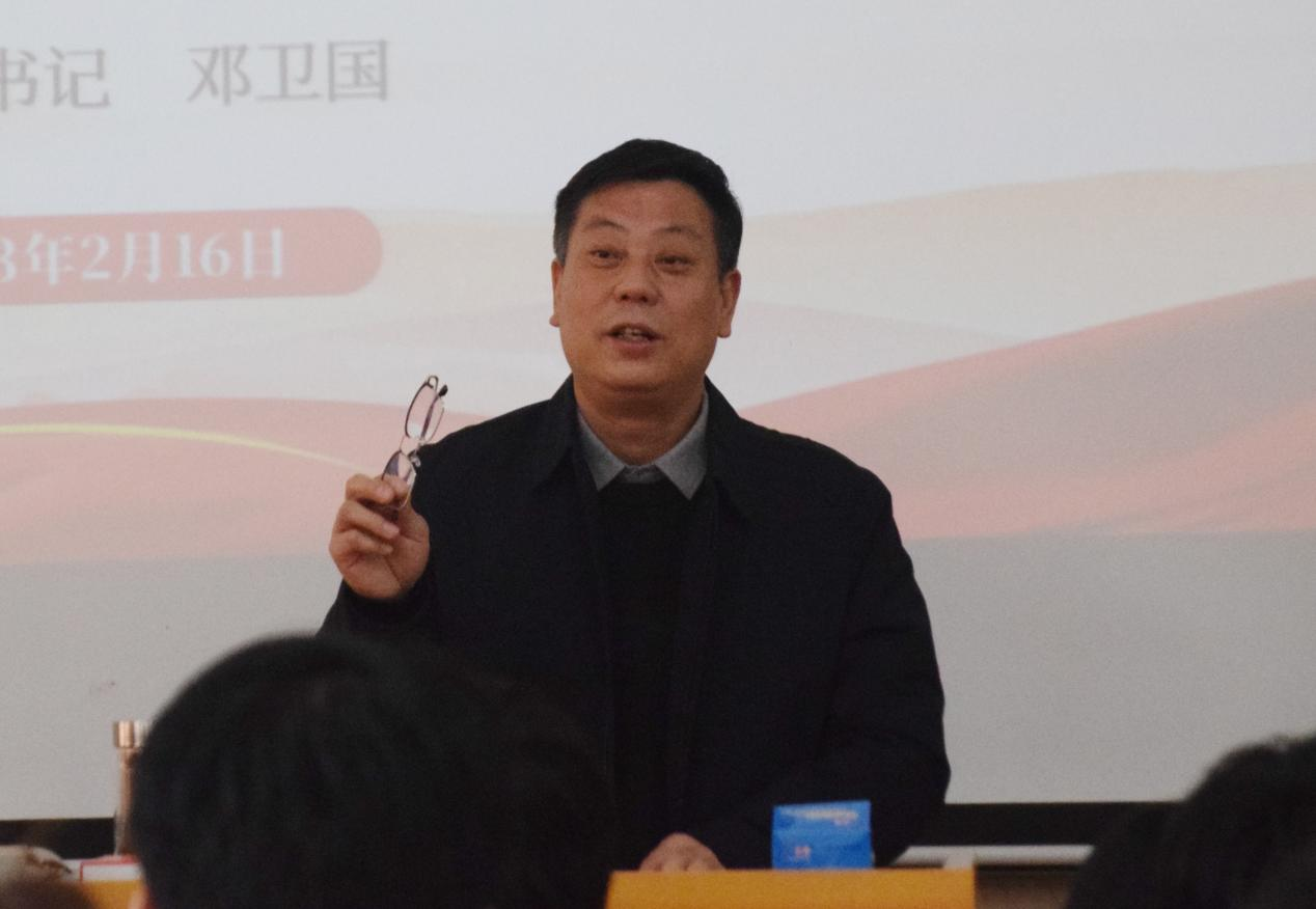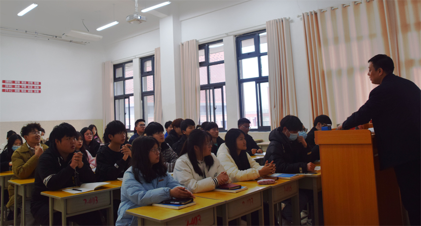 2月16日下午,纪委书记、监察专员邓卫国到电商物流学院为其联系班级全体学生讲授新学期开学第一课。邓卫国以“珍惜时光,发奋图强,争做无愧于新时代的有为青年”为题,以学生成长导师的身份从正确面对、处置疫情,正确对待、认识疫情;保持良好心态,回归常态化校园生活;坚守初心使命,充分彰显青年大学生的责任担当三个方面为学生讲明当前疫情态势,号召学生积极投身学习,鼓励学生争做有为青年。