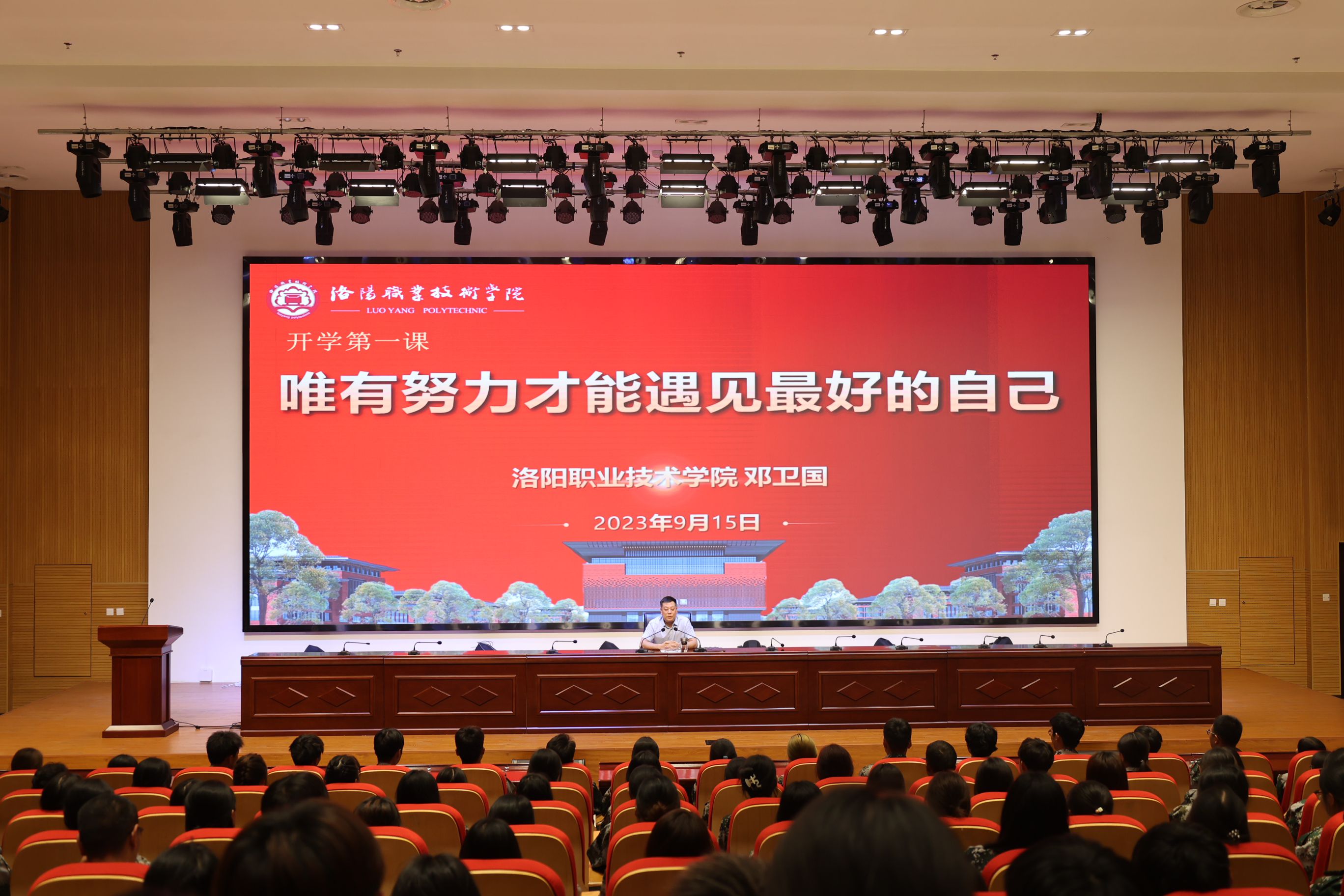 邓卫国以“唯有努力才能遇见最好的自己”为题,与新生分享交流,要求同学们珍惜当下、着眼长远、勤学巧学、不负韶华,抓住当前机遇、创造美好未来,为洛职争光添彩,为社会多作贡献!