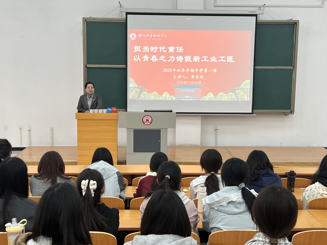 李东红以《担当时代重任 以青春之力铸就新工业工匠》为题,分别从认清形势、知校荣校、砺技修身、逐梦前行四个方面进行讲授,并对同学们提出了三点期望:一要传承红色基因,以家国情怀锚定“逐梦坐标”;二要拥抱智能浪潮,以创新能力抢占“时代先机”;三要深耕实干沃土,以匠心精神积蓄“成长底气”。 随后,李东红与学生们进行了亲切交流,鼓励大家要学好专业知识,练就过硬本领,争做新时代工业工匠,实现自身价值。